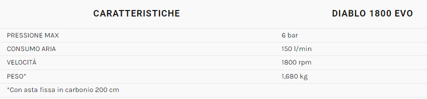L’aria di scarico viene indirizzata sui componenti in movimento per aiutare il raffreddamento e la lubrificazione, mentre una copertura li protegge dall’usura. In generale, si tratta di abbacchiatori che richiedono un basso consumo di aria. Il modello DIABLO 1800, grazie al sistema “short cut”, ossia la corsa ridotta di pistone e rastrelli, ha una superiore velocità di battuta (1800 a 6 bar).