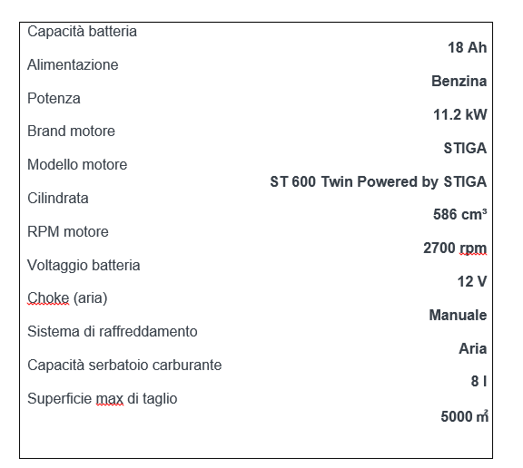 - Macchina potente dotata di motore bicilindrico STIGA